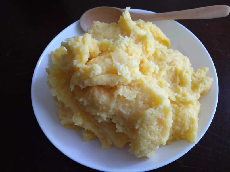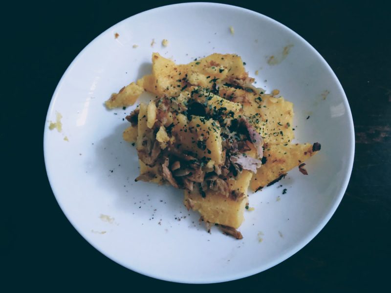 食感は、柔らかめのジャガイモという感じでおいしいけど、敢えてポレンタを食べる意味というのは感じないかもしれない。