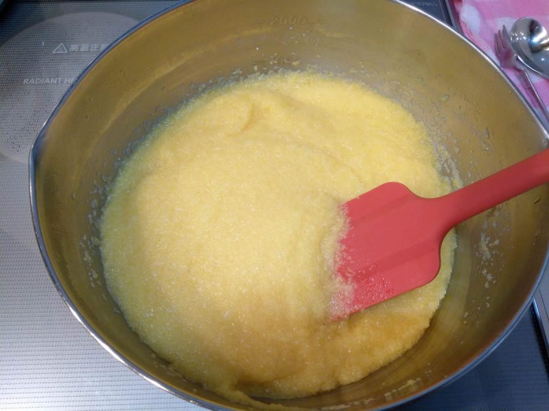 インスタントポレンタや、炊飯器ポレンタばかりだったので、新しいポレンタということもありきちんと鍋で練ってみることに。