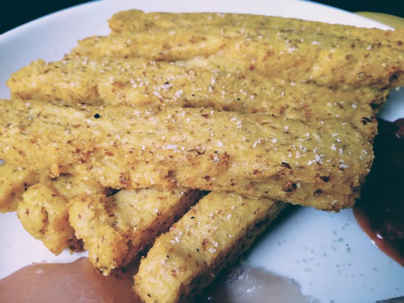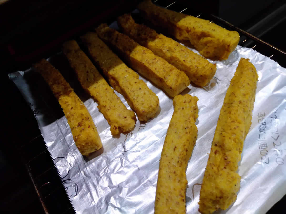 今まで同じようにスティック状にして焼いたポレンタは、内側はポテトに近いほっくりな食感だったので、このなめらかな口当たりにはかなりビックリでした。