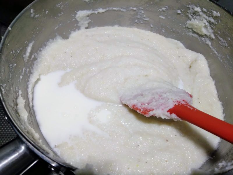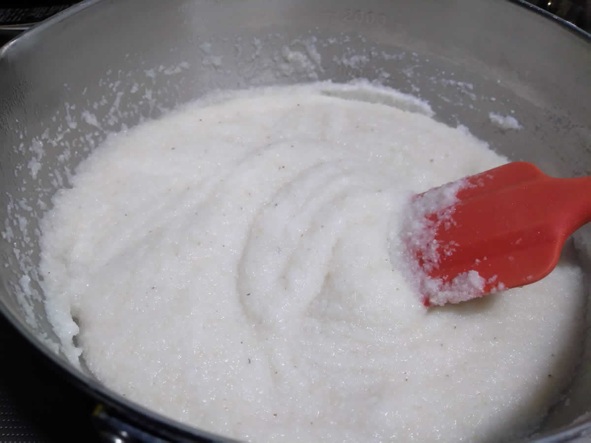 見慣れたとうもろこし粉から一転、きれいなホワイトポレンタ