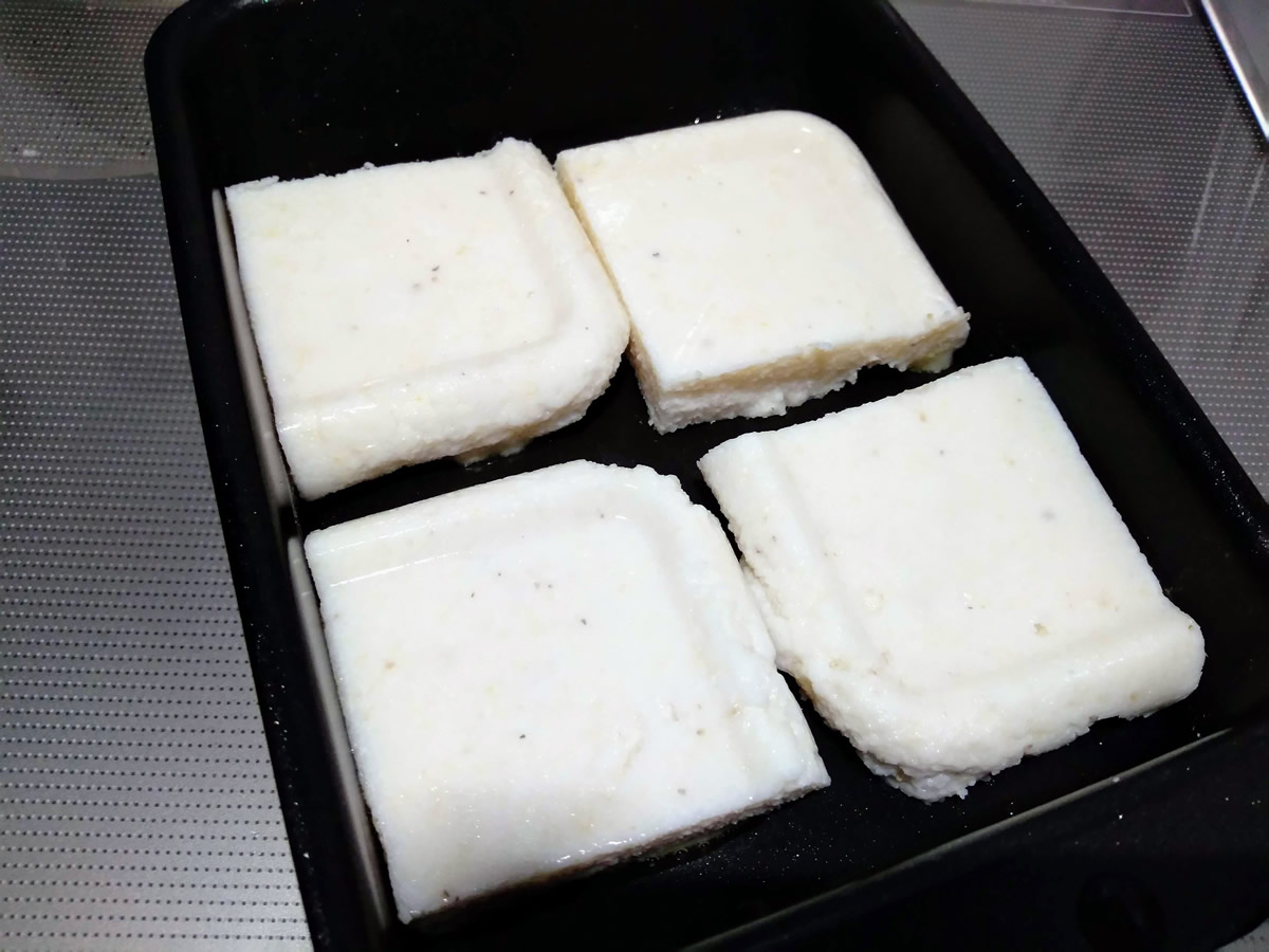 水分多めで作ったので、形は保っているもののかなりの軟らかさ。フライパンで焼く際にも慎重にひっくり返しながらの調理でした。