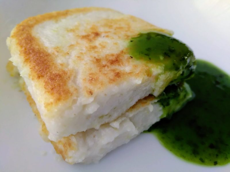 そして再びバジルソースにて。例えるなら、白はんぺんのような食感でしょうか。焦げ目のついた表面はカリっと、なかはフンワリ。これまで作ってきたポレンタとは全然違うものを食べているようで、またポレンタの懐の深さを知ることができました。