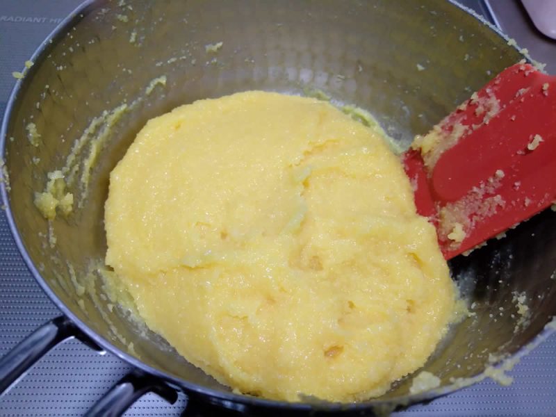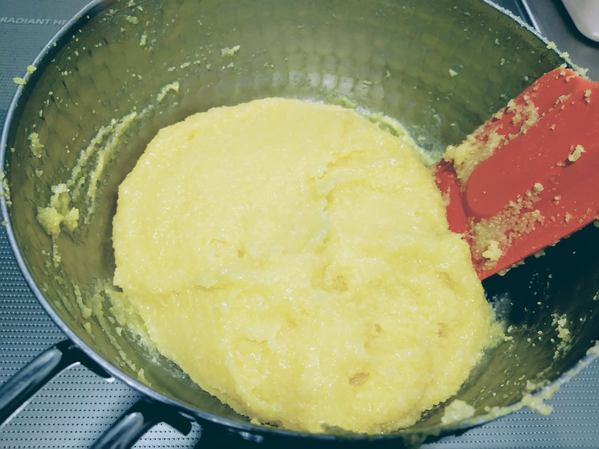ポレンタ自体は時間をかけて練ったので、水分が飛び、食感にもっちり感がでますが、味や風味は長く火を通したところでそこまで大きく変わらない気がします。