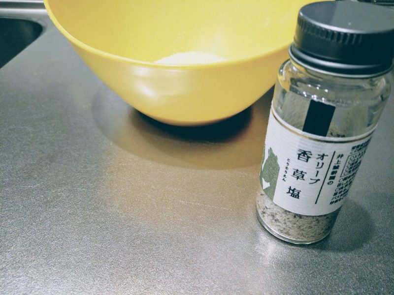 ハーブ塩には塩とハーブの他にもいくつか調味料的なものが入っているようで、シンプルながらも味わい深い。