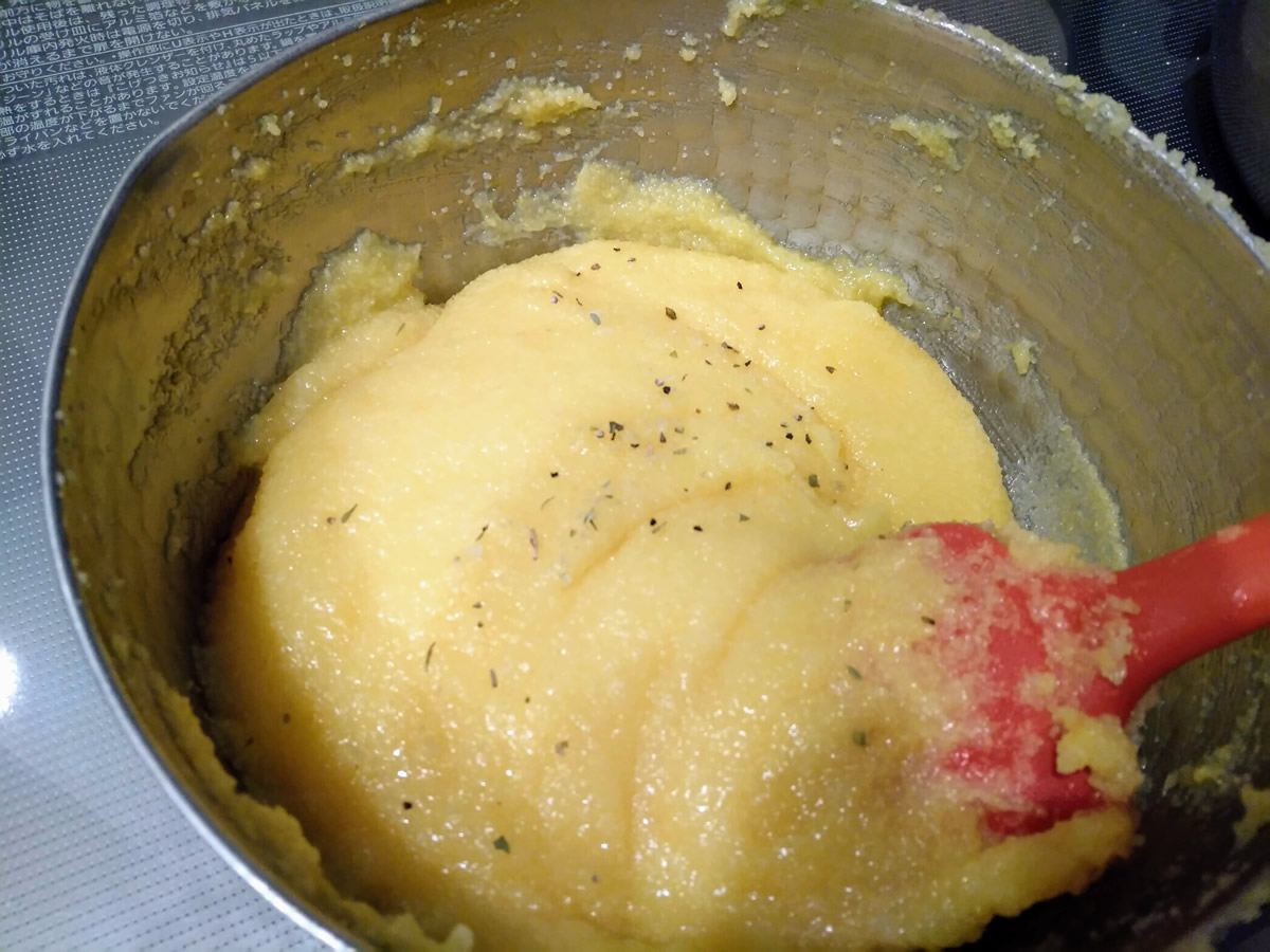 ここぞとばかりに、ハンバーグと一緒に食べても合うようなシンプルテイストのポレンタを作ってみることにしました。