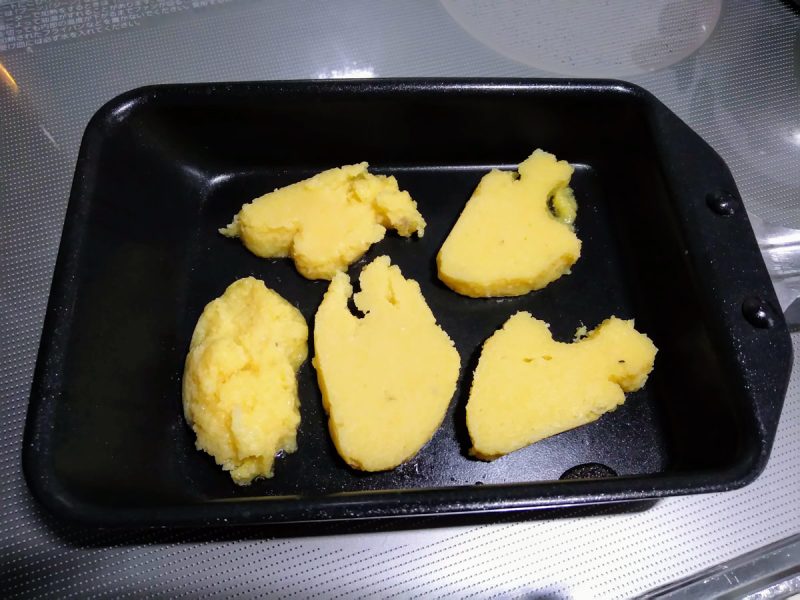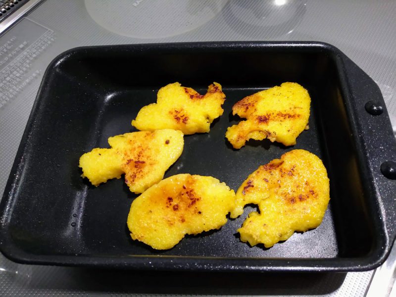 次の日、残ったポレンタをスライス。オリーブオイルと醤油でソテーしてみました。